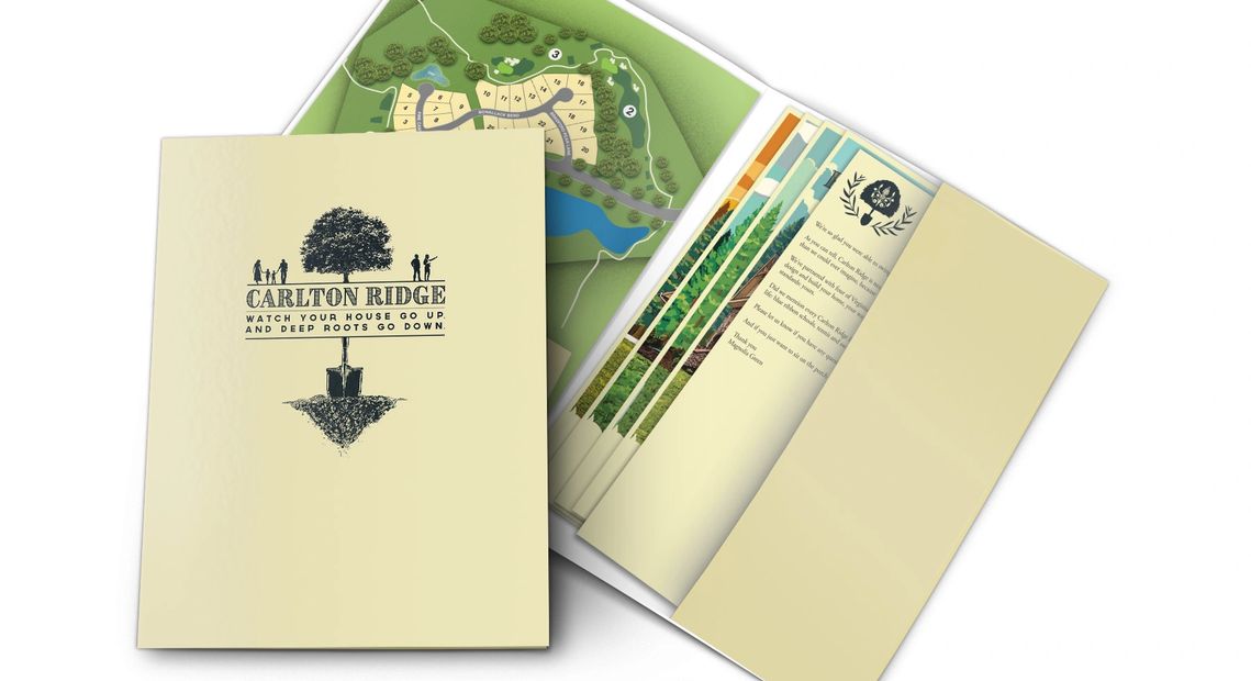 Post cards were sent to prospective buyers that invited them to the welcome center for a limited edition tote bag and information about Carlton Ridge.